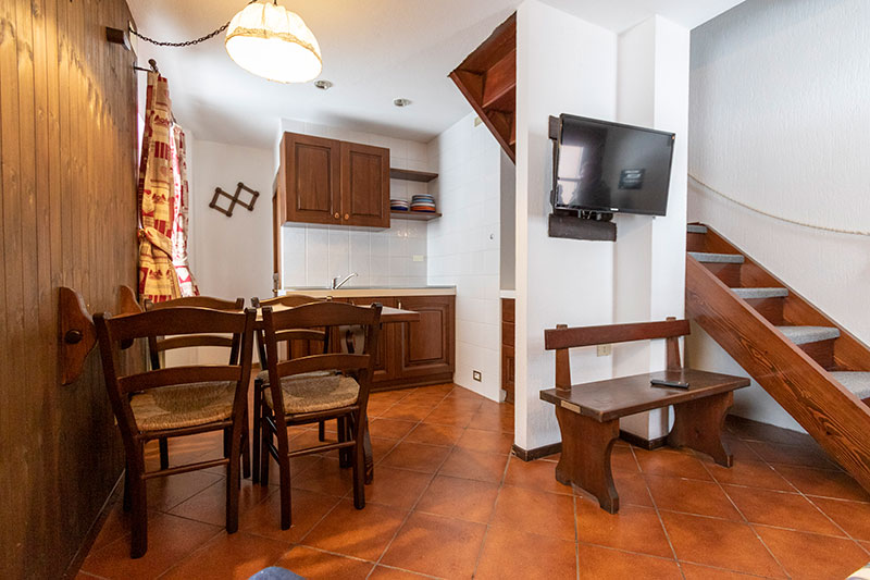 Costituito da un soggiorno con divano letto, tavolo, caminetto, cucinino attrezzato a induzione, una camera da letto con letto matrimoniale e una camera con due letti a castello.