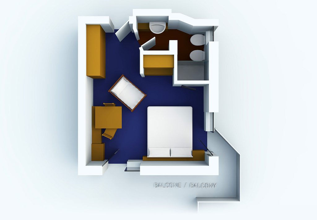Apartment consisting of a single room with: a double bed or two singles on request, table, small equipped kitchenette with induction, bathroom with shower, balcony. Possibility of adding a cot.